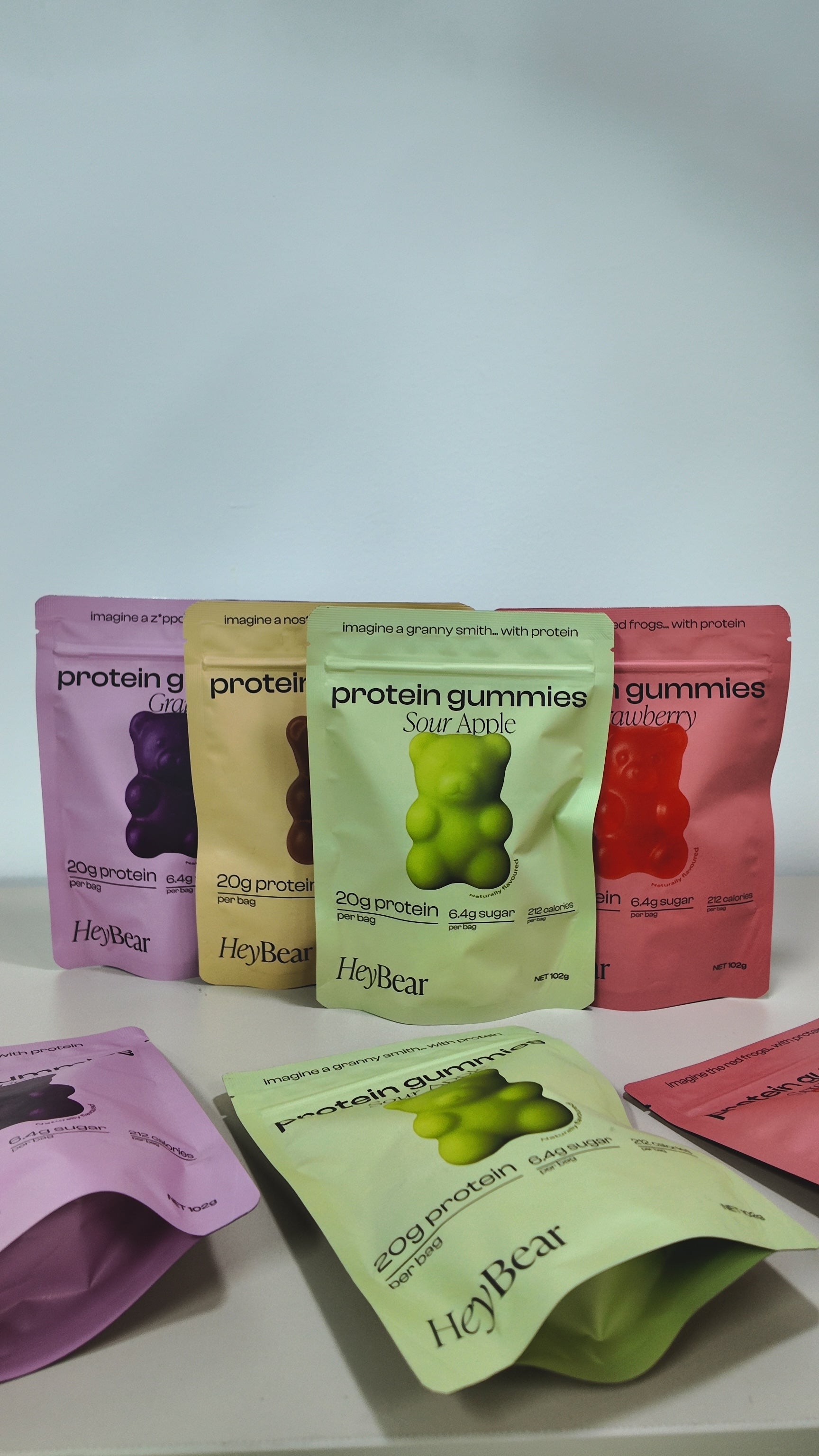 HeyBear tastes like real gummy bears - but with 20g protein, 6.4g sugar & only 212 cals